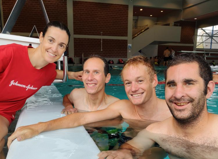 Elena de Marcos prépare deux athlètes pour l'Ironman 70.3 Patrick Nöthiger et Patrick Schweiger s'entraînent depuis quelques mois avec l'ambassadeur de Special Olympics Switzerland Jan van Berkel en vue d'un grand objectif : l'Ironman 70.3. Leur plus grand défi est cependant la natation. Elena de Marcos, collaboratrice de Johnson & Johnson, est arrivée à point nommé, car l'ancien membre de l'équipe nationale de natation espagnole voulait s'engager comme bénévole chez Special Olympics. Les trois se sont rapidement mis en relation. Depuis, Elena les entraînent intensivement et les préparent à la grande aventure.